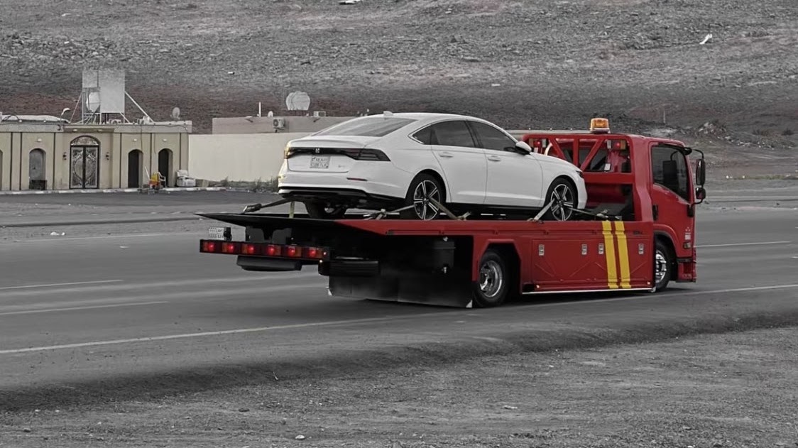 فريق متخصص في التعامل مع السيارات المتضررة بشدة وسحبها بعناية إلى مراكز الصيانة المعتمدة.